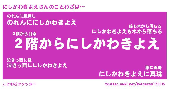 | 2回繰り返すあだ名 | 『にしにし』『ににしし』『くたくた』 |