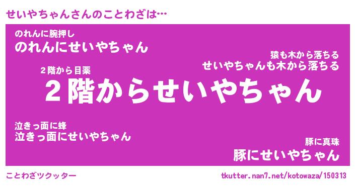 | 男性向けラノベタイトル風あだ名 | 『せいやちゃんの憂鬱』 |