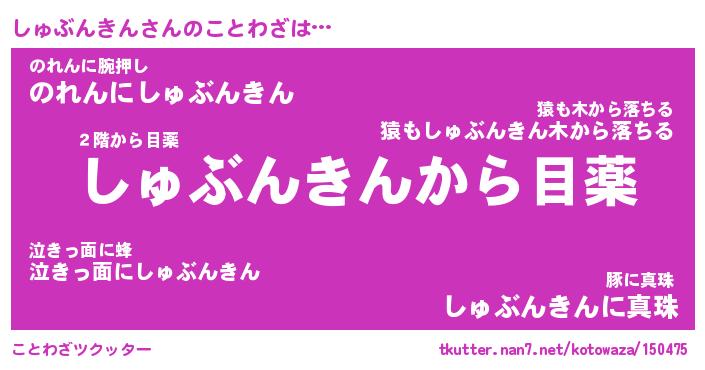 | ツイッター | しゅぶんきんさんのツイッターID『dendenmushi_idle』 |