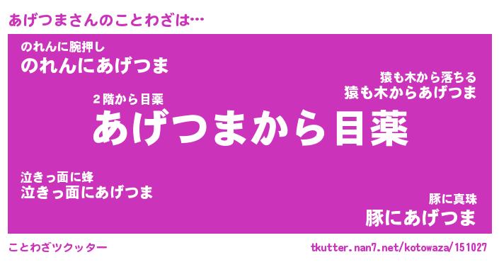 | 意味不明あだ名 | 『ペロリンあげつま』『永久保存あげつま』 |