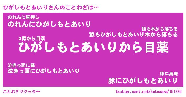 | ツイッター | ひがしもとあいりさんのツイッターID『namakemono_nyan』 |