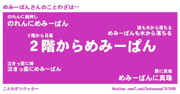 | 男性向けラノベタイトル風あだ名 | 『めみーぱんの憂鬱』 |