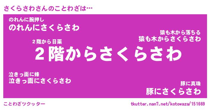 | 胡散臭い通販商品みたいなあだ名 | 『必ず成功するブレスレット…その名も「さくらさわ」』 |