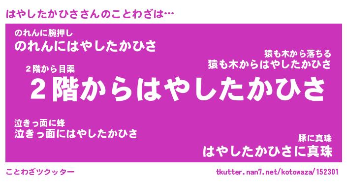 | 胡散臭い通販商品みたいなあだ名 | 『必ず成功する霊験あらたかなお札…その名も「はやしたかひさ」』 |
