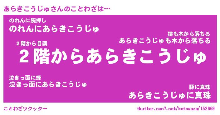 | 肩書あだ名 | 『あらきこうじゅ御曹司』 |