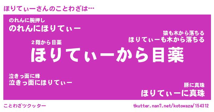 | ヘコむあだ名 | 『ほりにー』『酢こんぶ』『ほり太郎』 |