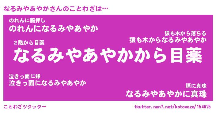 | 恥ずかしいあだ名 | 『プリティーなるみやあやか』『なるちん』 |