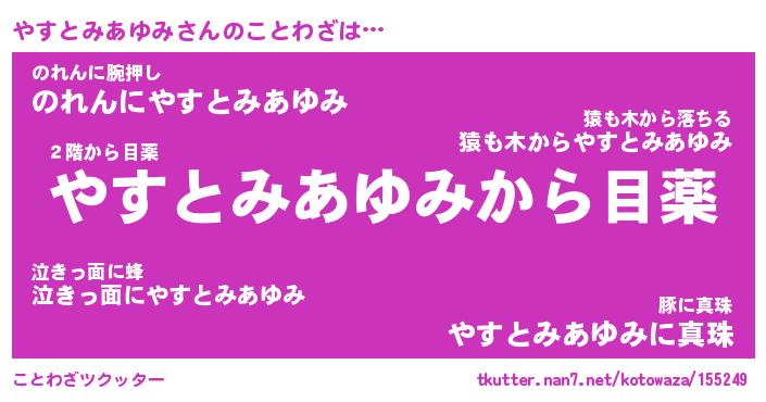 | 胡散臭い通販商品みたいなあだ名 | 『モテモテ間違いなし水晶球…その名も「やすとみあゆみ」』 |