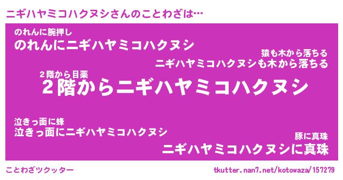 | 男性向けラノベタイトル風あだ名 | 『ニギハヤミコハクヌシの憂鬱』 |