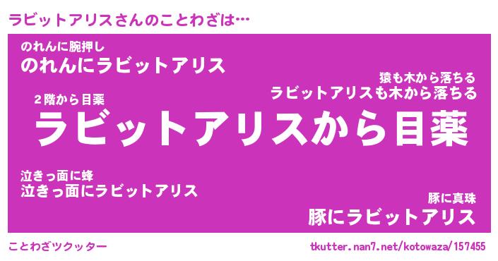 | 胡散臭い通販商品みたいなあだ名 | 『モテモテ間違いなしブレスレット…その名も「ラビットアリス」』 |