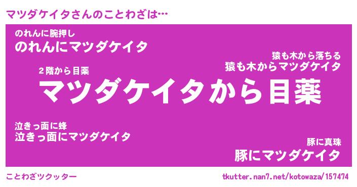 | 肩書あだ名 | 『マツダケイタ社長』『マツダケイタ団長』 |
