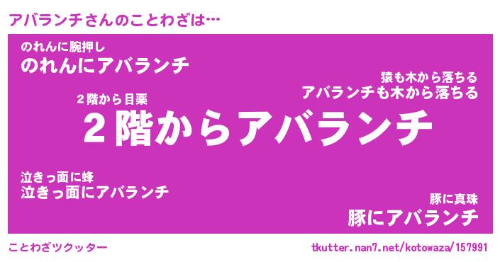 | ヘコむあだ名 | 『アバふぇ~』『牛乳』『アバぷりん』 |