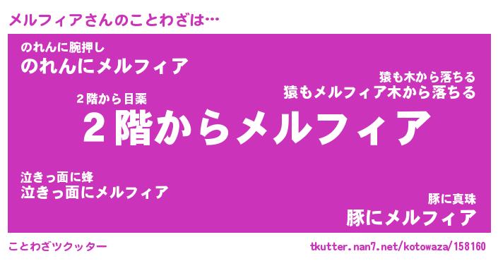| 男性向けラノベタイトル風あだ名 | 『メルフィアの憂鬱』 |