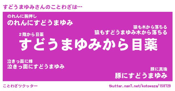 | 胡散臭い通販商品みたいなあだ名 | 『億万長者になれるブレスレット…その名も「すどうまゆみ」』 |