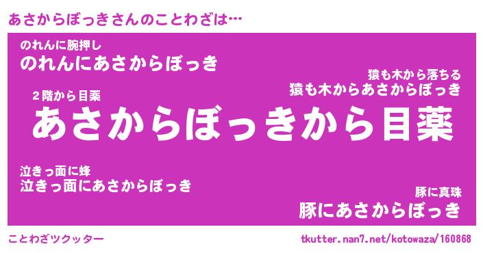 | 胡散臭い通販商品みたいなあだ名 | 『億万長者になれるブレスレット…その名も「あさからぼっき」』 |