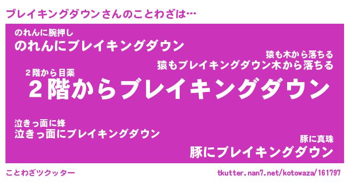 | 男性向けラノベタイトル風あだ名 | 『ブレイキングダウンの憂鬱』 |