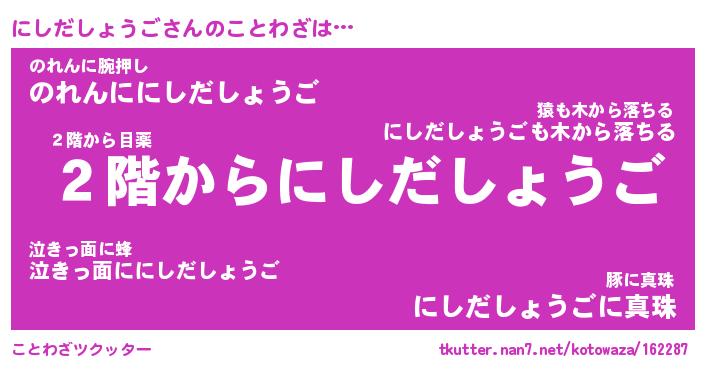 | 胡散臭い通販商品みたいなあだ名 | 『モテモテ間違いなし霊験あらたかなお札…その名も「にしだしょうご」』 |
