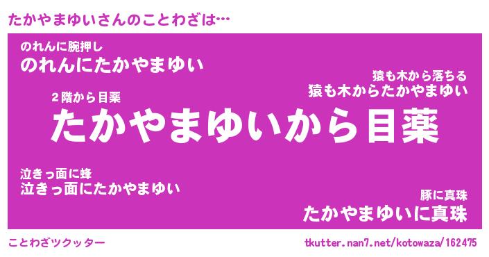| 胡散臭い通販商品みたいなあだ名 | 『億万長者になれる霊験あらたかなお札…その名も「たかやまゆい」』 |