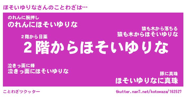 | 恥ずかしいあだ名 | 『プリティーほそいゆりな』『ほそっちょ』 |