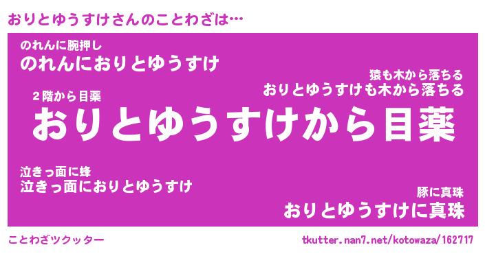 | 胡散臭い通販商品みたいなあだ名 | 『億万長者になれる霊験あらたかなお札…その名も「おりとゆうすけ」』 |