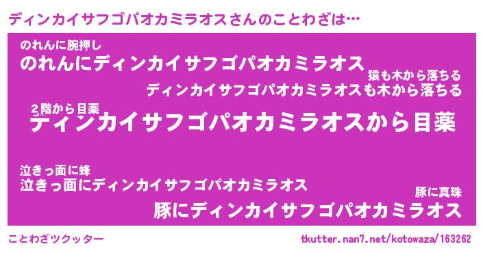 | 胡散臭い通販商品みたいなあだ名 | 『億万長者になれるブレスレット…その名も「ディンカイサフゴパオカミラオス」』 |