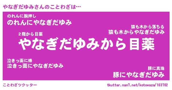 | 胡散臭い通販商品みたいなあだ名 | 『億万長者になれる霊験あらたかなお札…その名も「やなぎだゆみ」』 |
