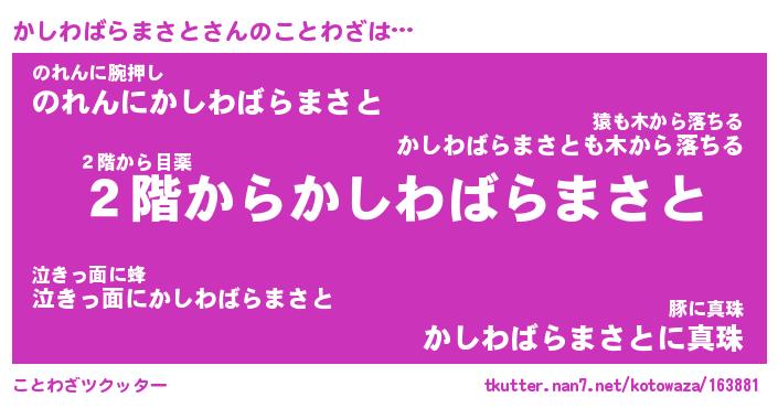 | 胡散臭い通販商品みたいなあだ名 | 『必ず成功する霊験あらたかなお札…その名も「かしわばらまさと」』 |
