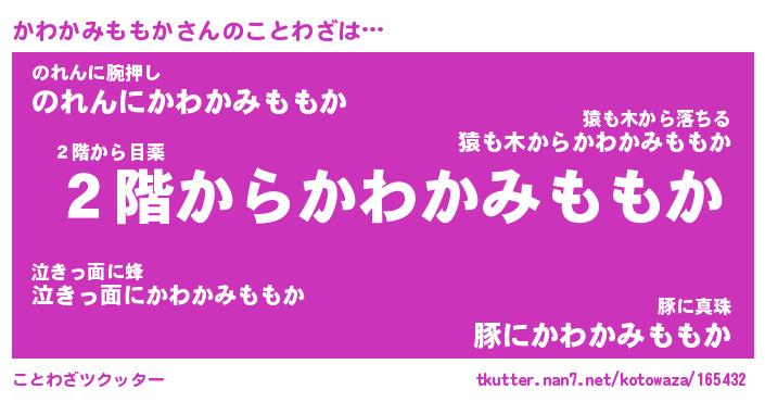 | 胡散臭い通販商品みたいなあだ名 | 『モテモテ間違いなし霊験あらたかなお札…その名も「かわかみももか」』 |