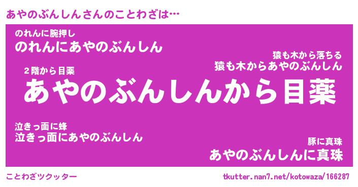 | ヘコむあだ名 | 『あやもー』『つくし』『あやお』 |
