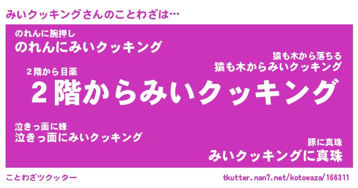 | 男性向けラノベタイトル風あだ名 | 『みいクッキングの憂鬱』 |