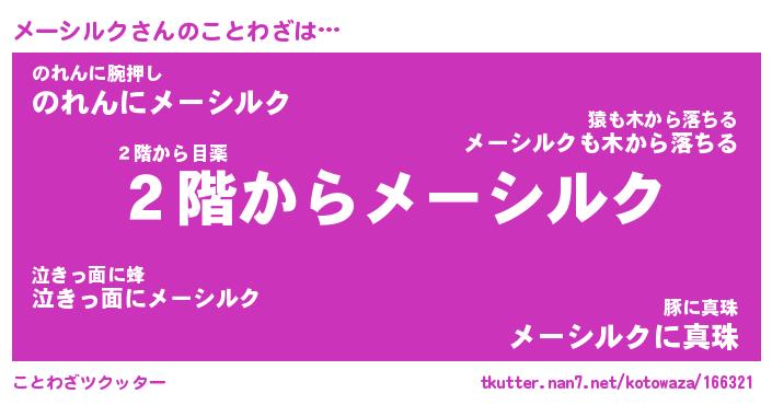 | 胡散臭い通販商品みたいなあだ名 | 『必ず成功する水晶球…その名も「メーシルク」』 |