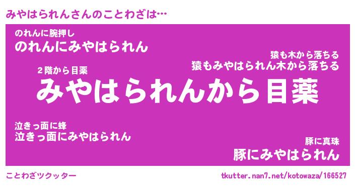 | 胡散臭い通販商品みたいなあだ名 | 『億万長者になれる霊験あらたかなお札…その名も「みやはられん」』 |