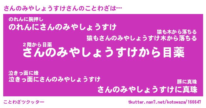 | 胡散臭い通販商品みたいなあだ名 | 『億万長者になれる霊験あらたかなお札…その名も「さんのみやしょうすけ」』 |