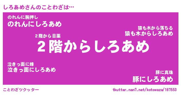 | 欧米人風あだ名 | 『マイケルしろあめ』『ウサインしろあめ』 |