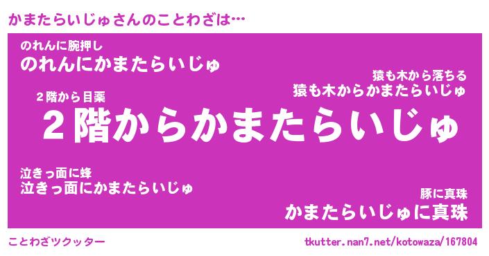 | 胡散臭い通販商品みたいなあだ名 | 『必ず成功する霊験あらたかなお札…その名も「かまたらいじゅ」』 |