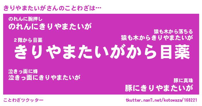 | 胡散臭い通販商品みたいなあだ名 | 『億万長者になれる霊験あらたかなお札…その名も「きりやまたいが」』 |