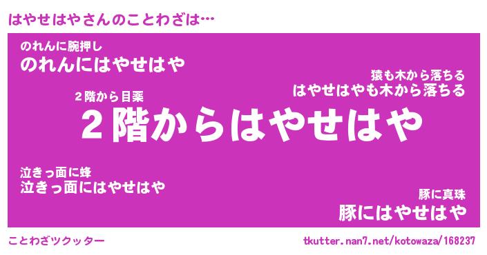 | 2回繰り返すあだ名 | 『はやはや』『ははやや』『にたにた』 |