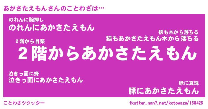 | 男性向けラノベタイトル風あだ名 | 『あかさたえもんの憂鬱』 |