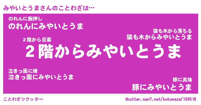 | ヘコむあだ名 | 『みやにー』『レバニラ』『みやを』 |