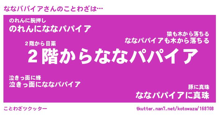 | 胡散臭い通販商品みたいなあだ名 | 『必ず成功するブレスレット…その名も「ななパパイア」』 |