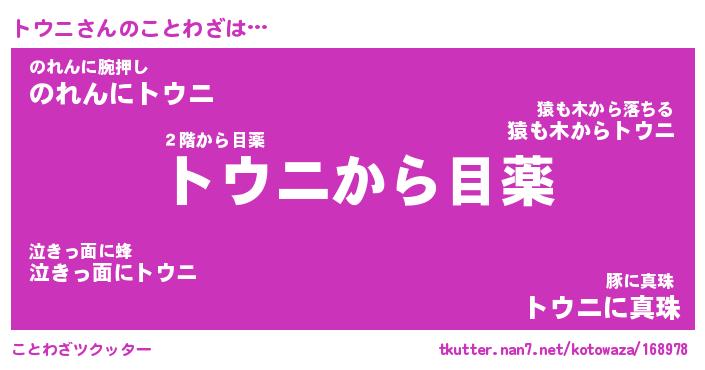 | 胡散臭い通販商品みたいなあだ名 | 『億万長者になれるブレスレット…その名も「トウニ」』 |