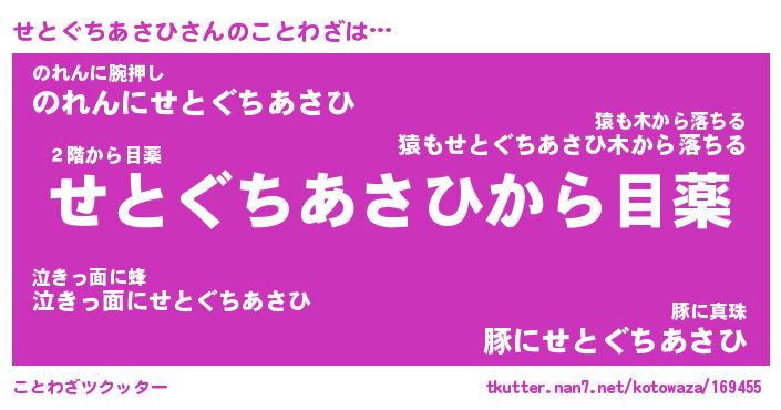 | 2回繰り返すあだ名 | 『せとせと』『せせとと』『いそいそ』 |