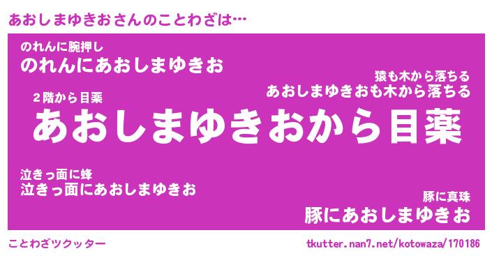 | 恥ずかしいあだ名 | 『プリティーあおしまゆきお』『あおちん』 |