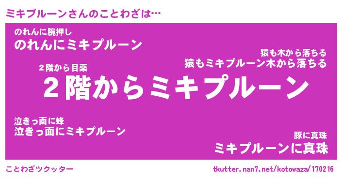 | 男性向けラノベタイトル風あだ名 | 『ミキプルーンの憂鬱』 |