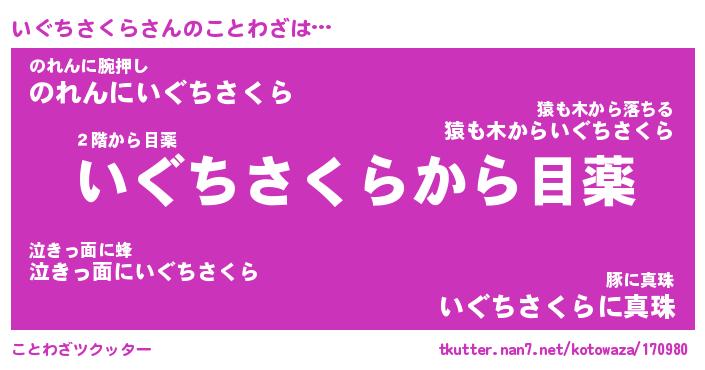 | 胡散臭い通販商品みたいなあだ名 | 『億万長者になれるブレスレット…その名も「いぐちさくら」』 |