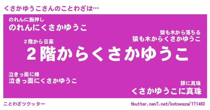 | ヒーロー風カッコイイあだ名 | 『スーパークサカユウコ』『天弓騎士クサ』 |