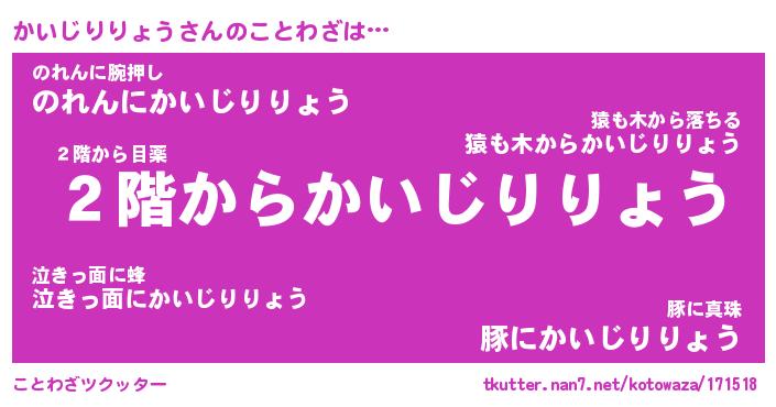 | 男性向けラノベタイトル風あだ名 | 『かいじりりょうの憂鬱』 |