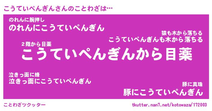 | 胡散臭い通販商品みたいなあだ名 | 『億万長者になれる霊験あらたかなお札…その名も「こうていぺんぎん」』 |