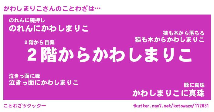 | 胡散臭い通販商品みたいなあだ名 | 『モテモテ間違いなし霊験あらたかなお札…その名も「かわしまりこ」』 |