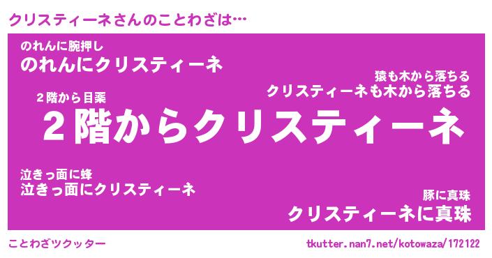 | ツイッター | クリスティーネさんのツイッターID『konnyaku_star』 |